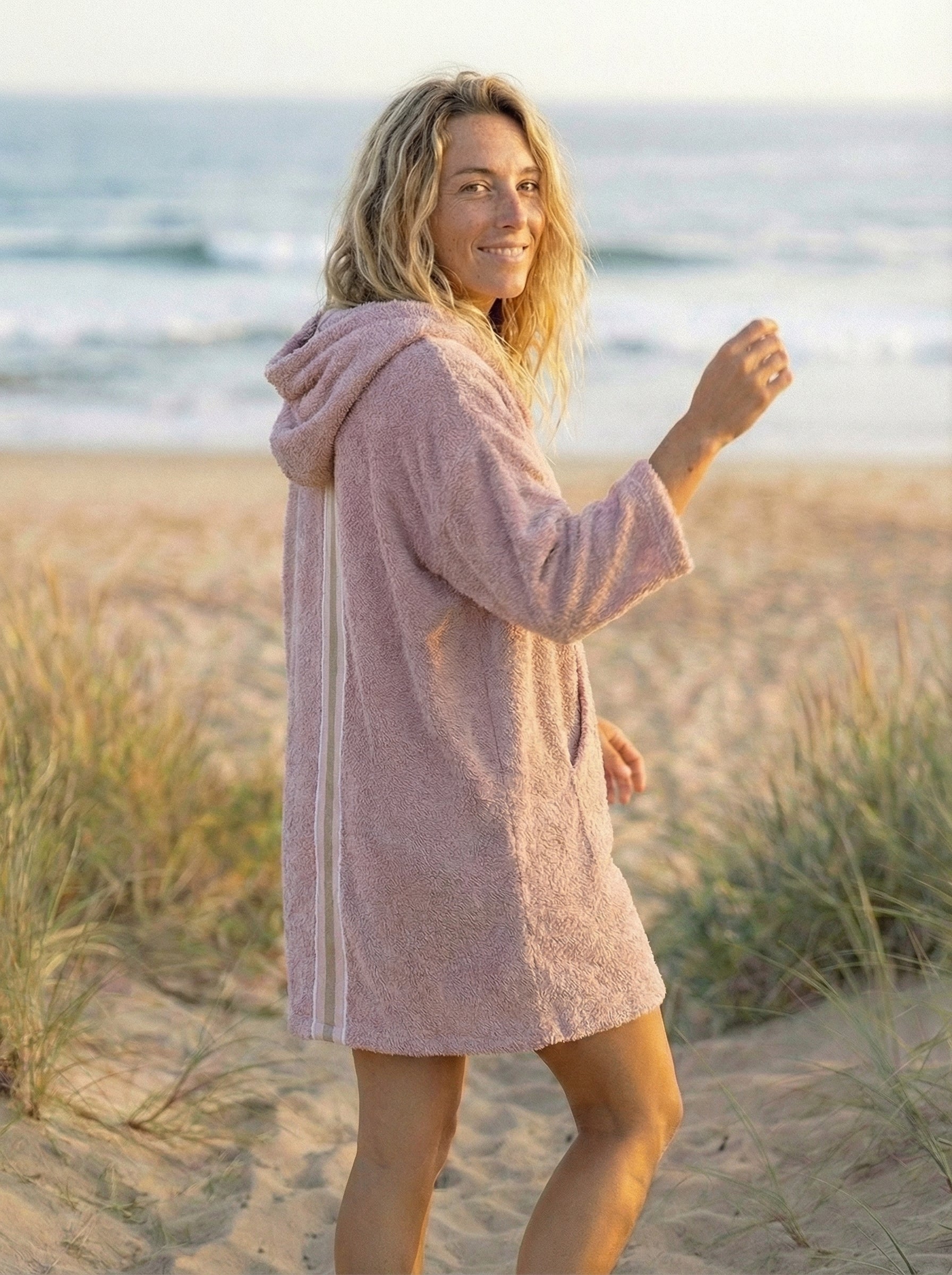 - Multifunktionskleidungsstück: Handtuch, Bademantel und mobile Umkleidekabine in einem.