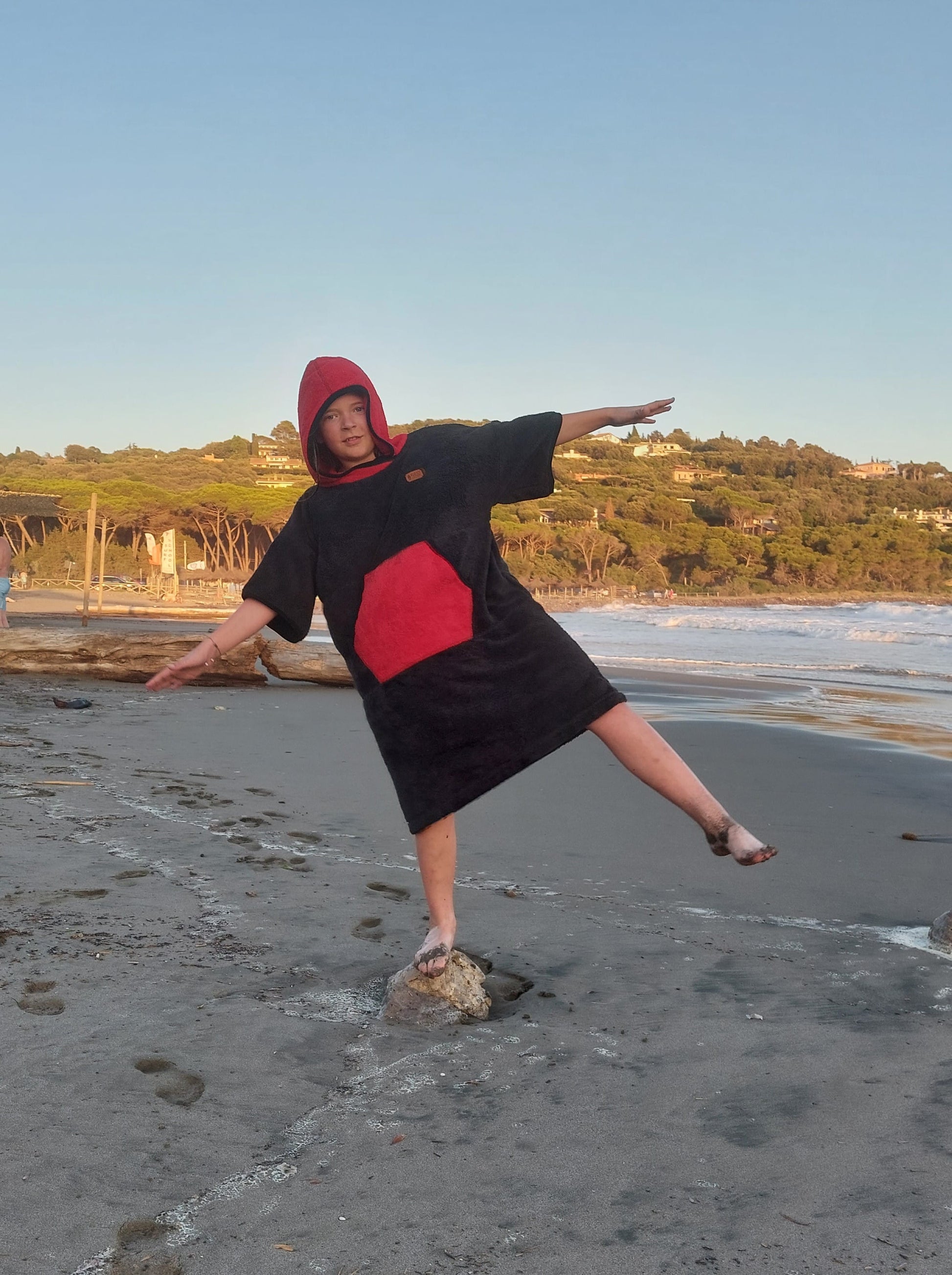Einfacher roter Badeponcho für Kinder und Erwachsene