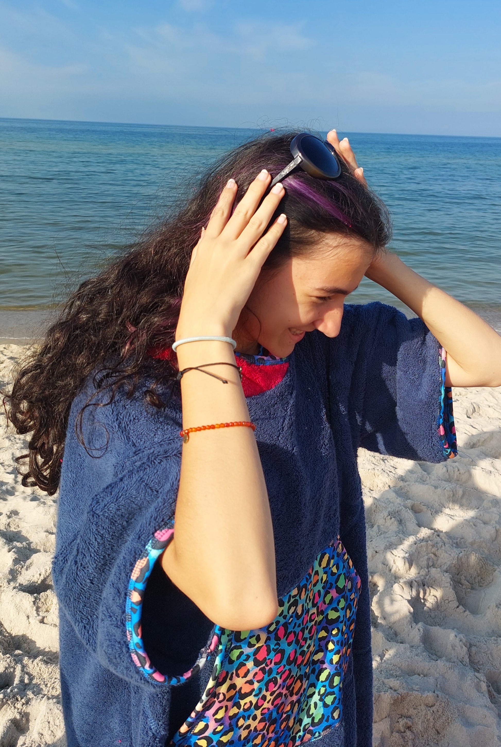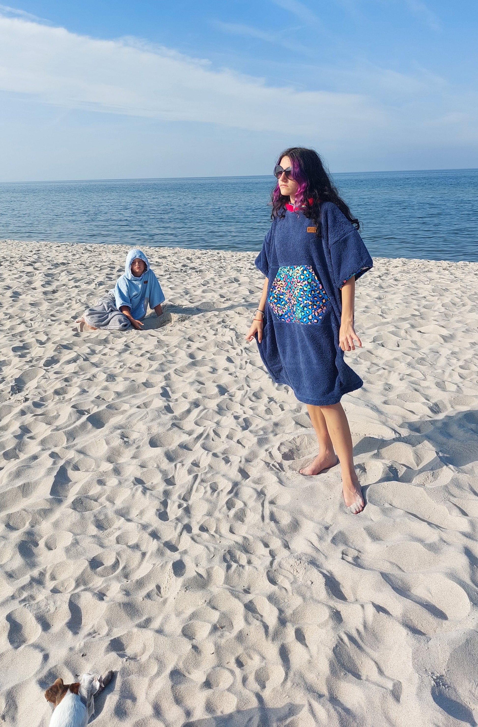 - Multifunktionskleidungsstück: Handtuch, Bademantel und mobile Umkleidekabine in einem.