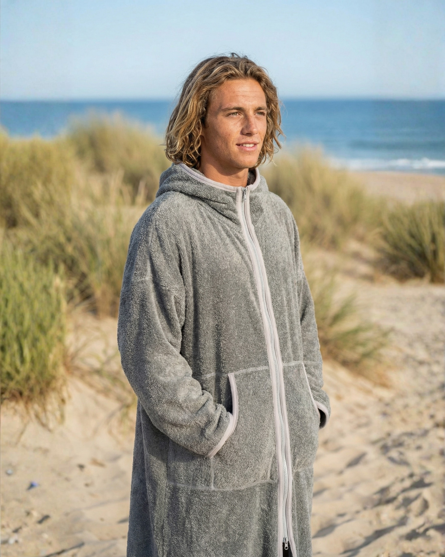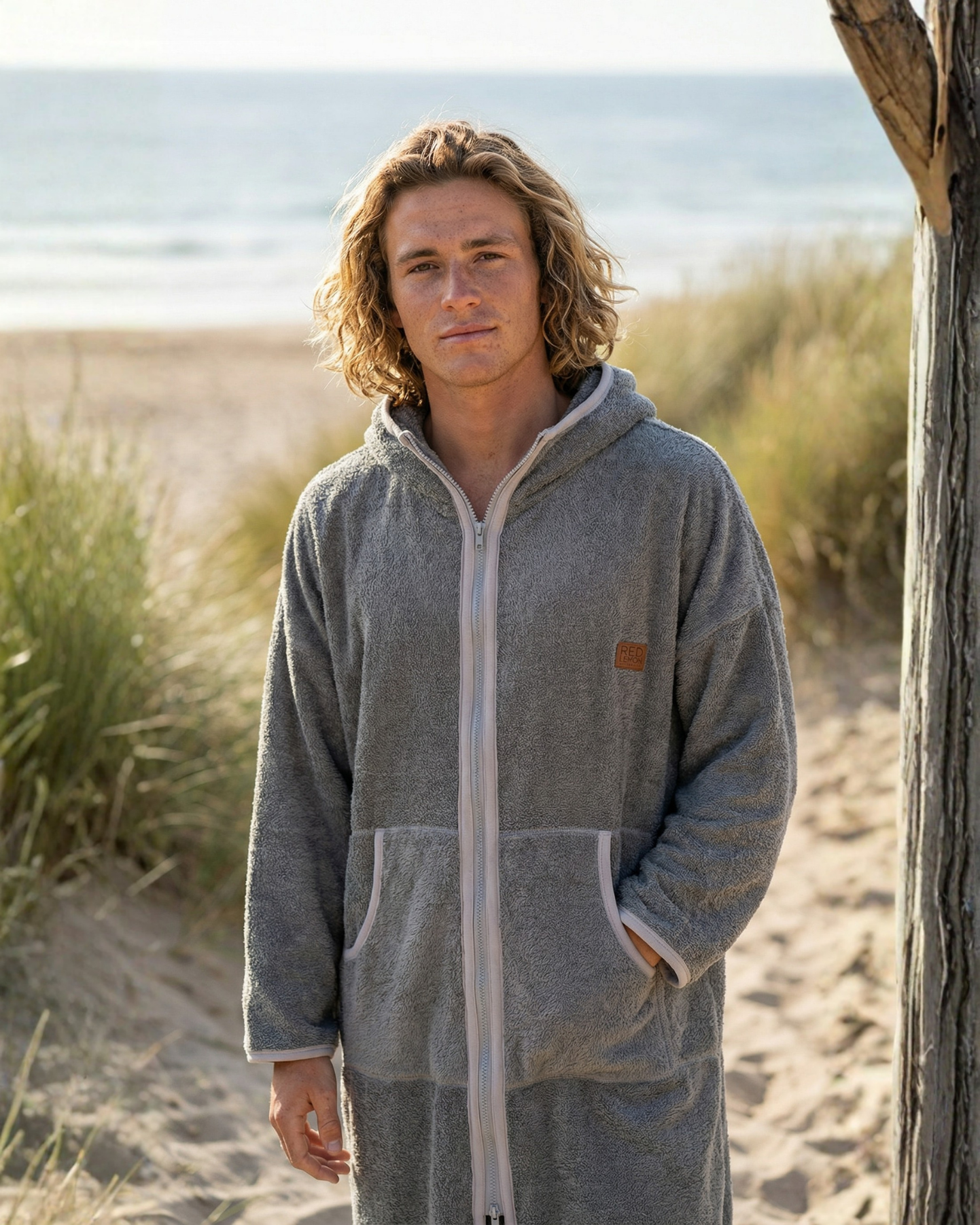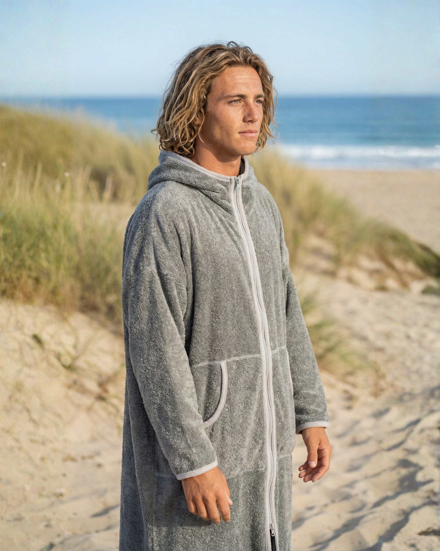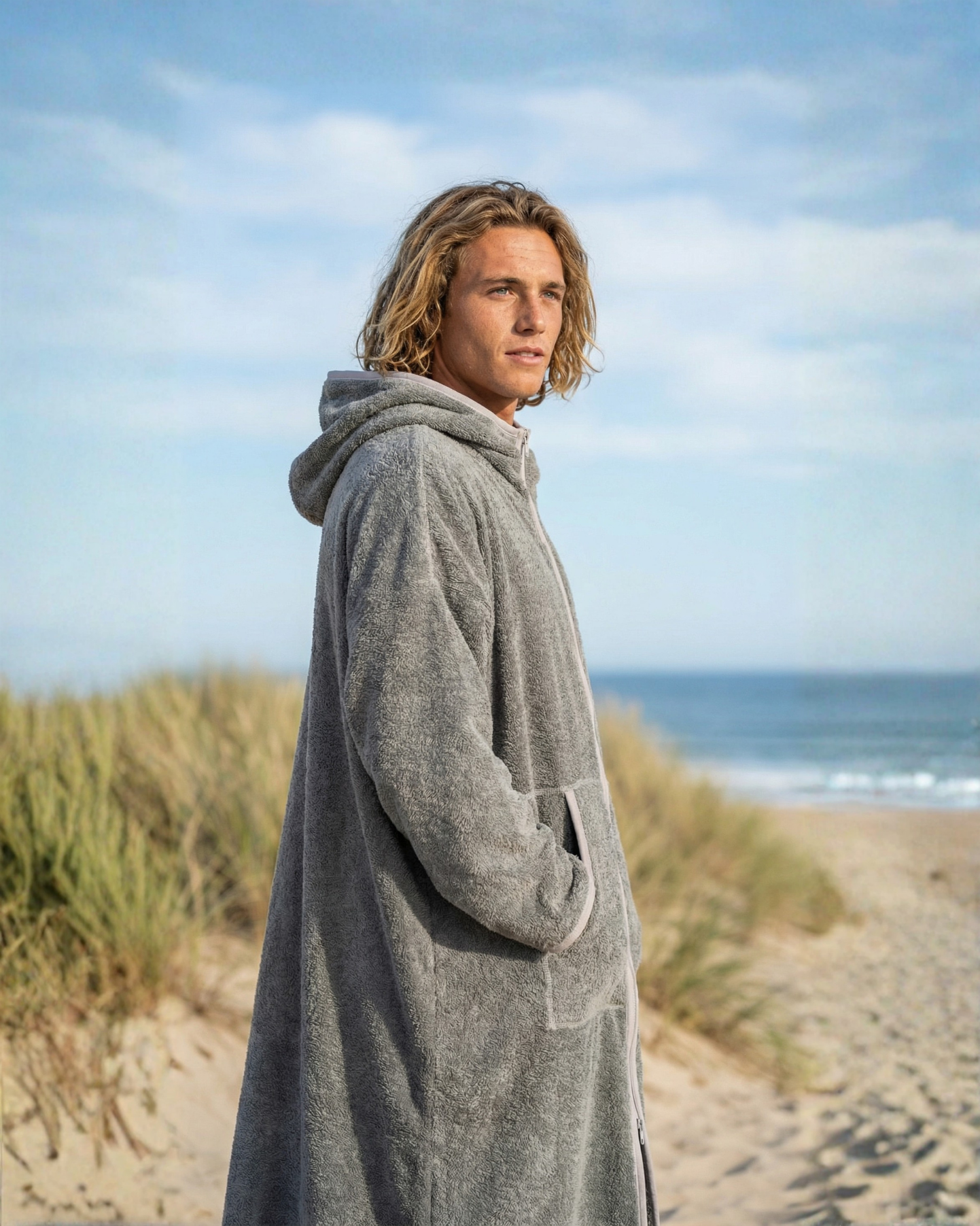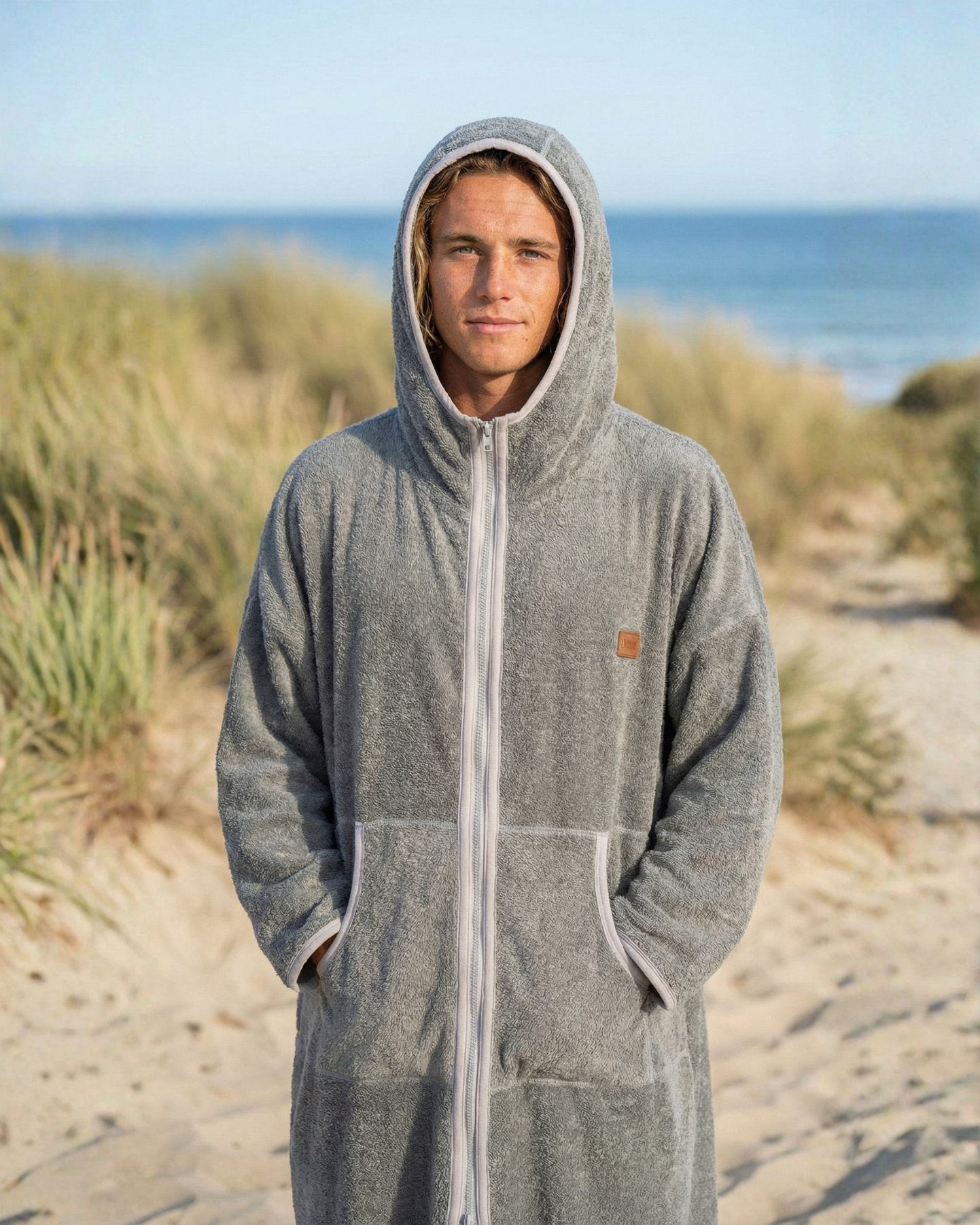Gray to model, który sprawdzi się wszędzie – na plaży, basenie, w spa, na kempingu czy po treningu. Dzięki luźnemu krojowi i wygodnym rękawom pozwala swobodnie się przebrać, zachowując ciepło i prywatność. To idealny wybór także dla morsów – wystarczy chwila, by ogrzać się po zimowej kąpieli.
