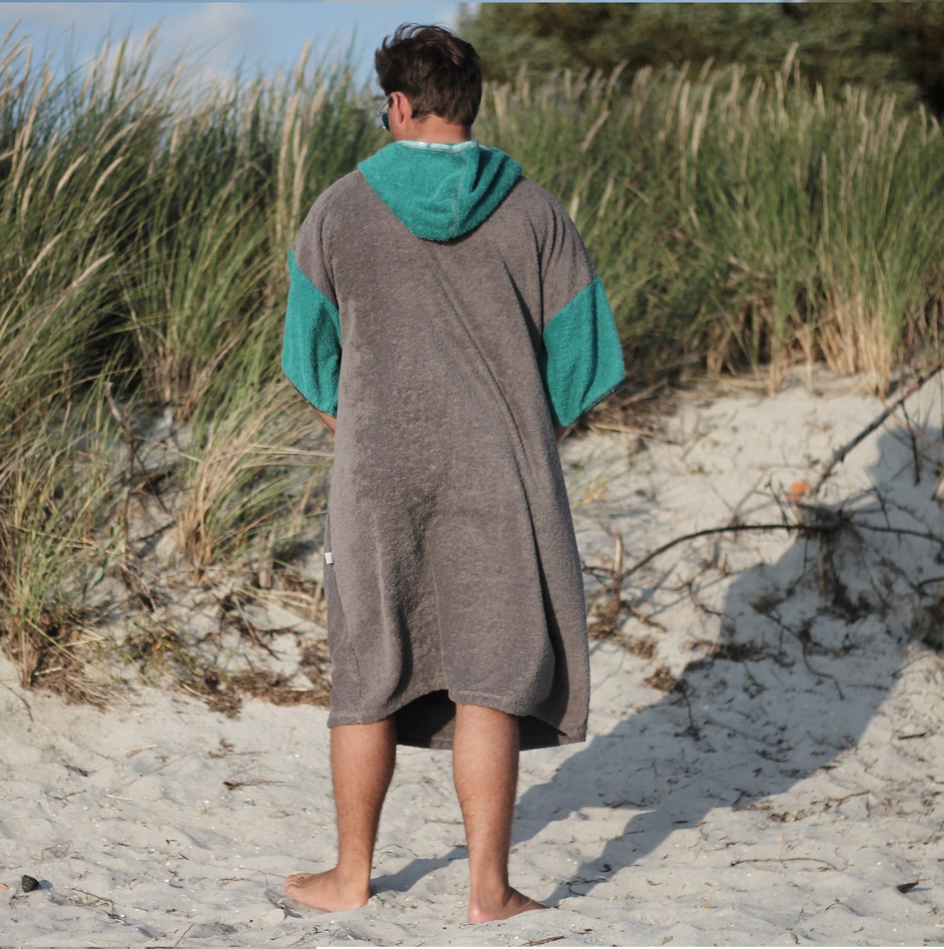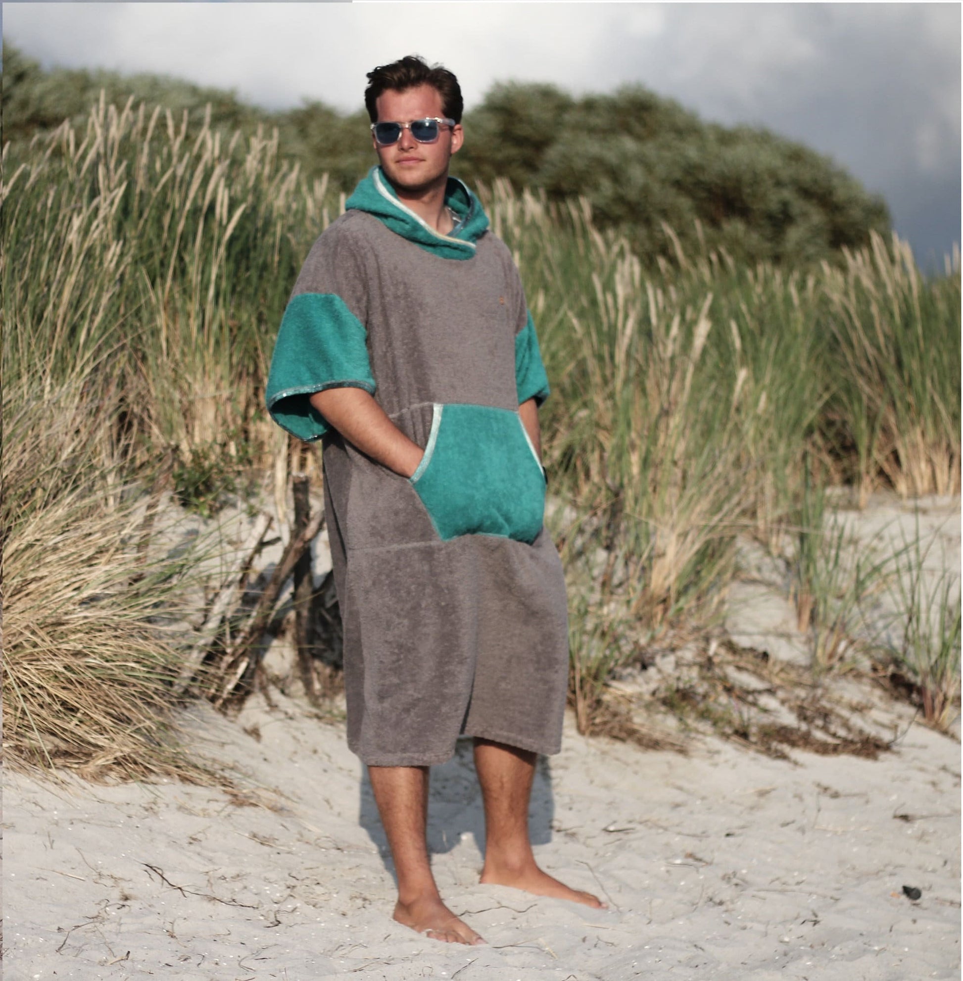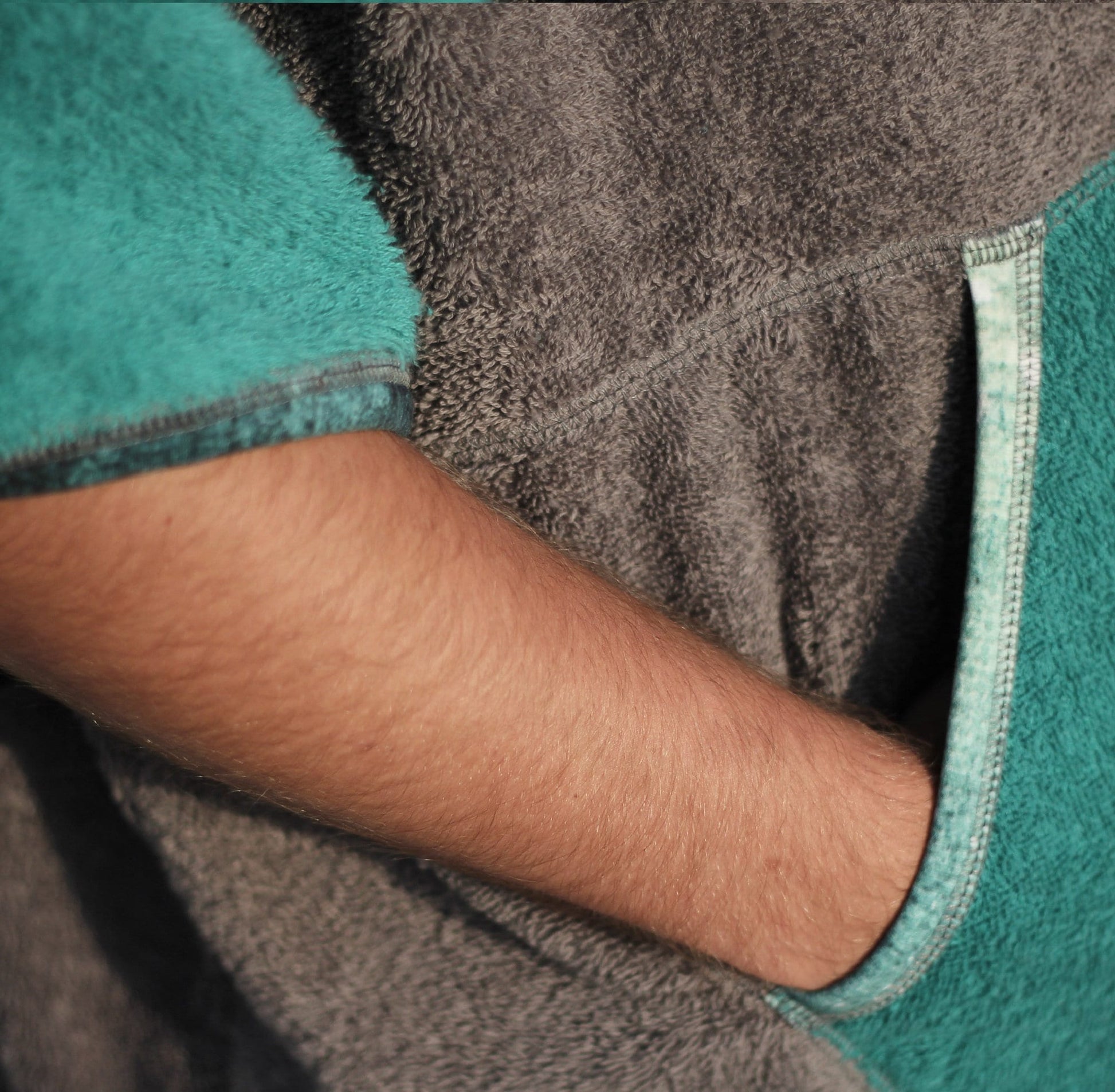 James Green to miękkie, chłonne i ciepłe ponczo z bawełnianej frotte (100%, 400 g/m²) w eleganckiej, głębokiej zieleni. Zaprojektowane z myślą o surferach, morsach i wszystkich, którzy chcą szybko się ogrzać i wygodnie przebrać po wodnych aktywnościach. Luźny krój, duży kaptur i kieszeń typu „kangurka” zapewniają komfort oraz prywatność – na plaży, basenie, kempingu czy w kamperze.