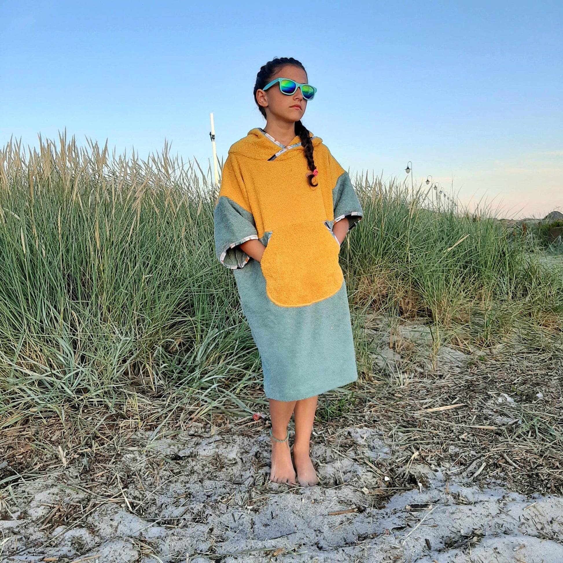 Banana Yellow to miękkie, ciepłe ponczo z 100% bawełnianej frotte (400 g/m²), które łączy funkcję ręcznika, okrycia i mobilnej przebieralni. Luźny krój, duży kaptur i obszerna kieszeń gwarantują swobodę ruchów oraz wygodę po kąpieli – na plaży, basenie i po morsowaniu.