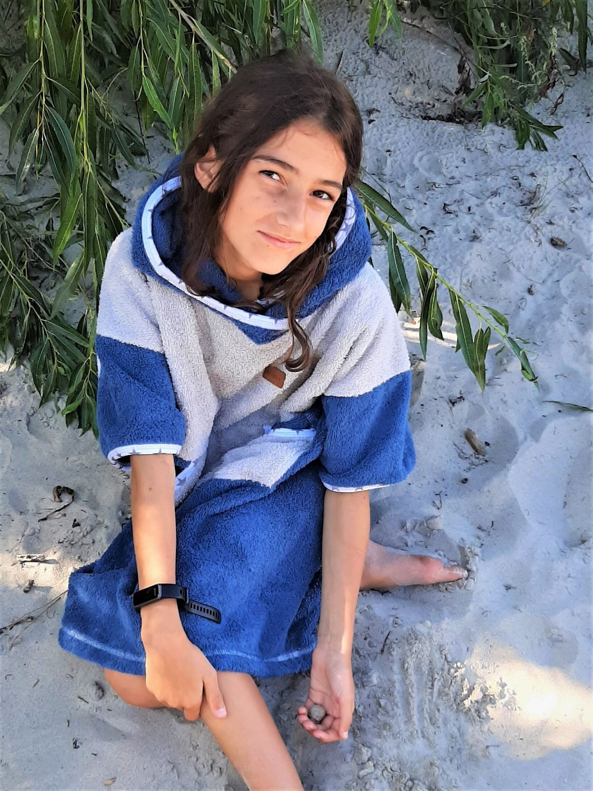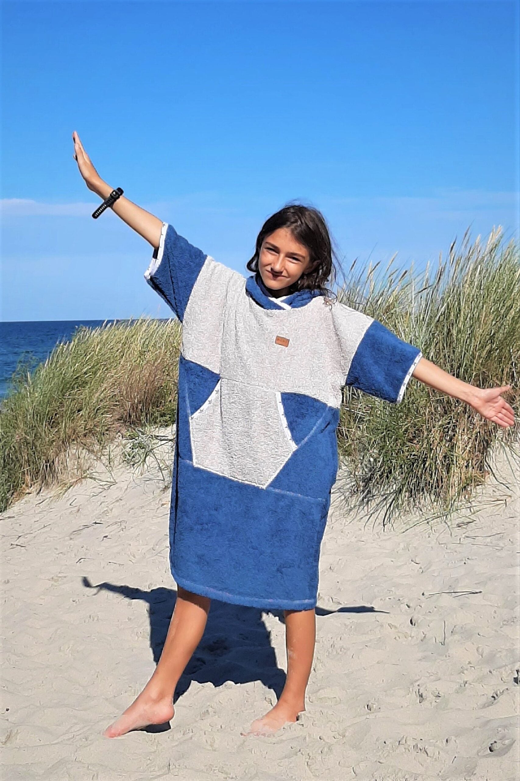 Blue Star to miękkie, chłonne ponczo z bawełnianej frotte 100% (400 g/m²), które skutecznie osusza i przyjemnie dogrzewa po morzu, jeziorze czy basenie. Luźny krój, duży kaptur i swobodny dostęp do rąk sprawiają, że działa jak mobilna przebieralnia – idealna dla surferów, morsów, plażowiczów i wszystkich aktywnych osób.