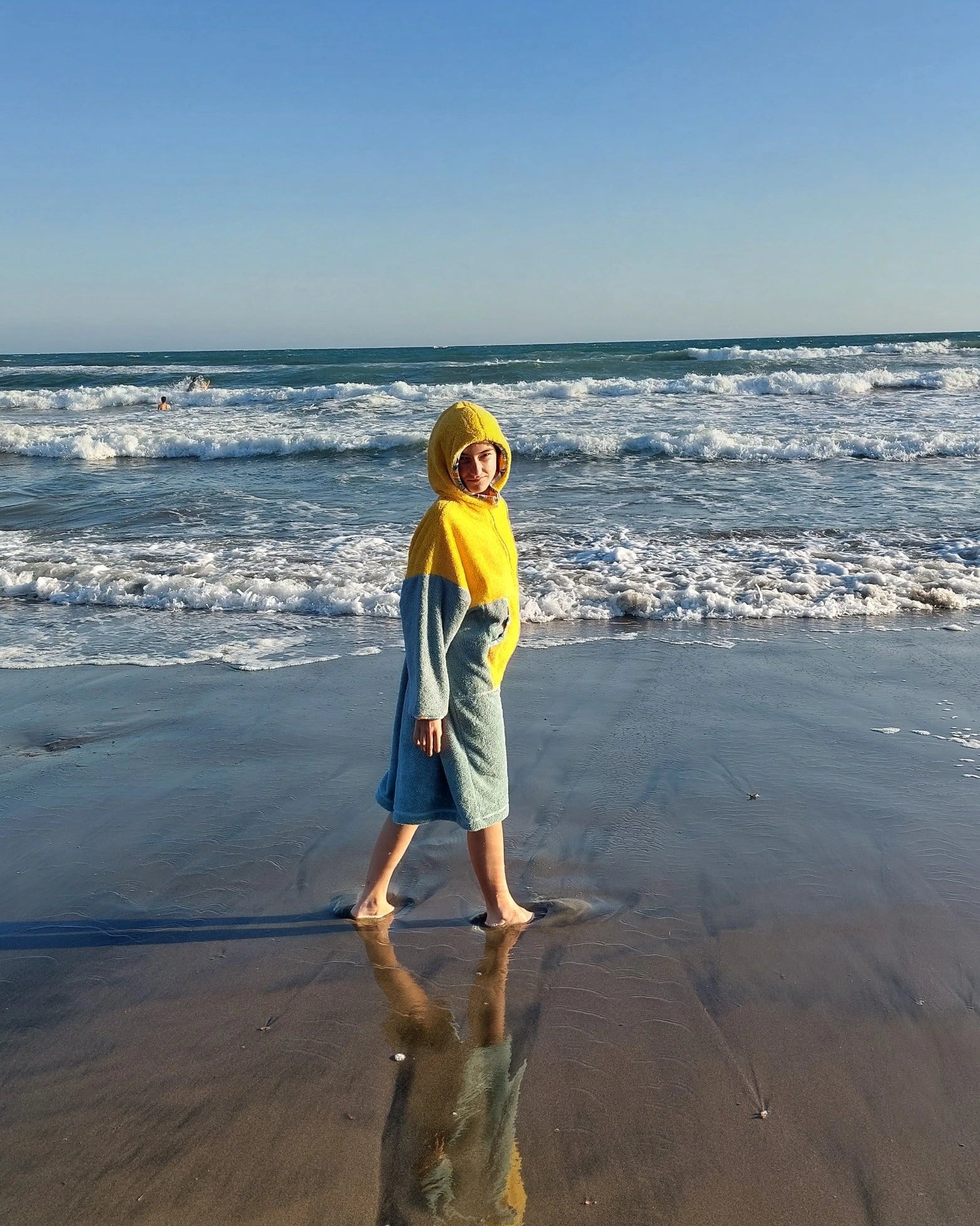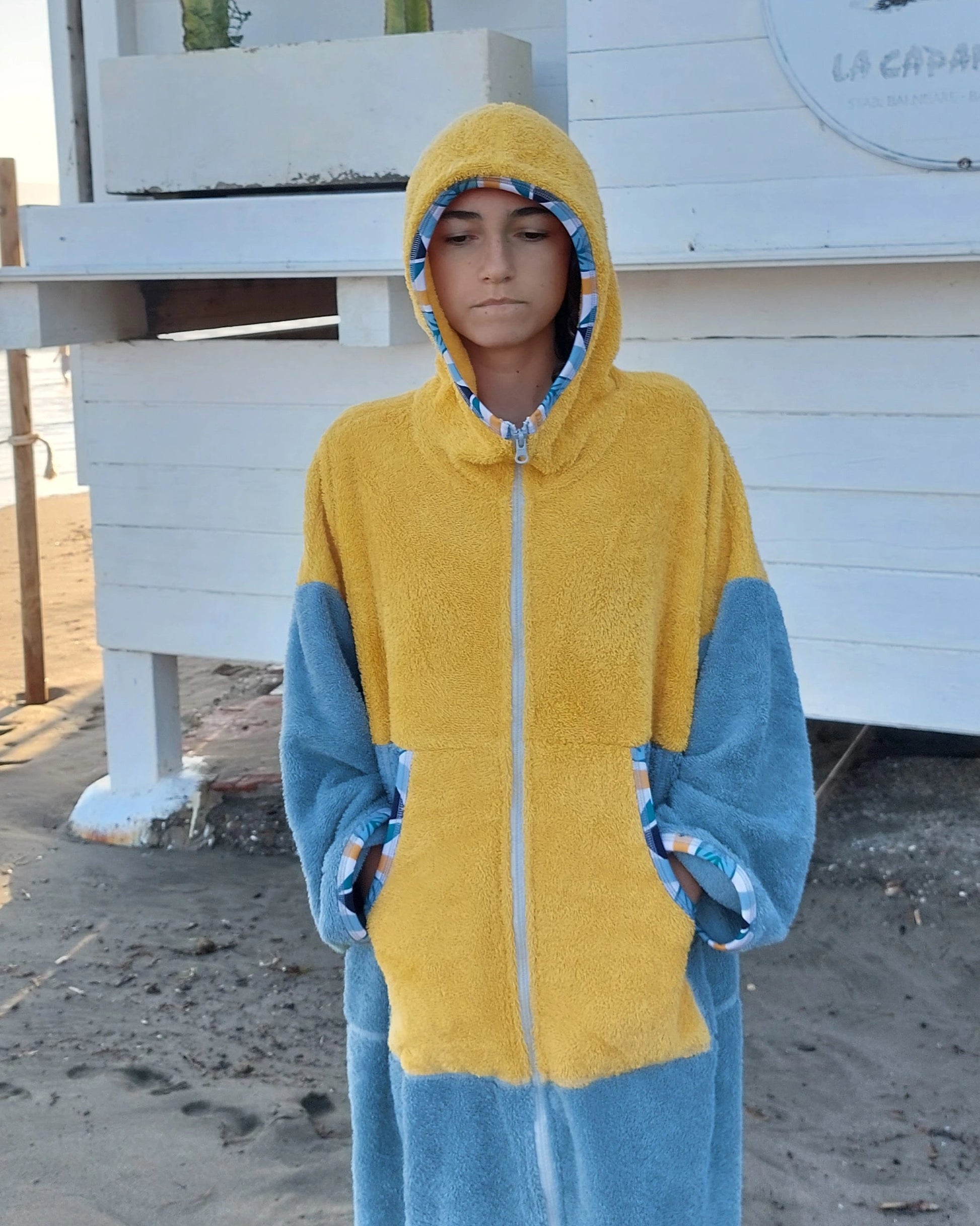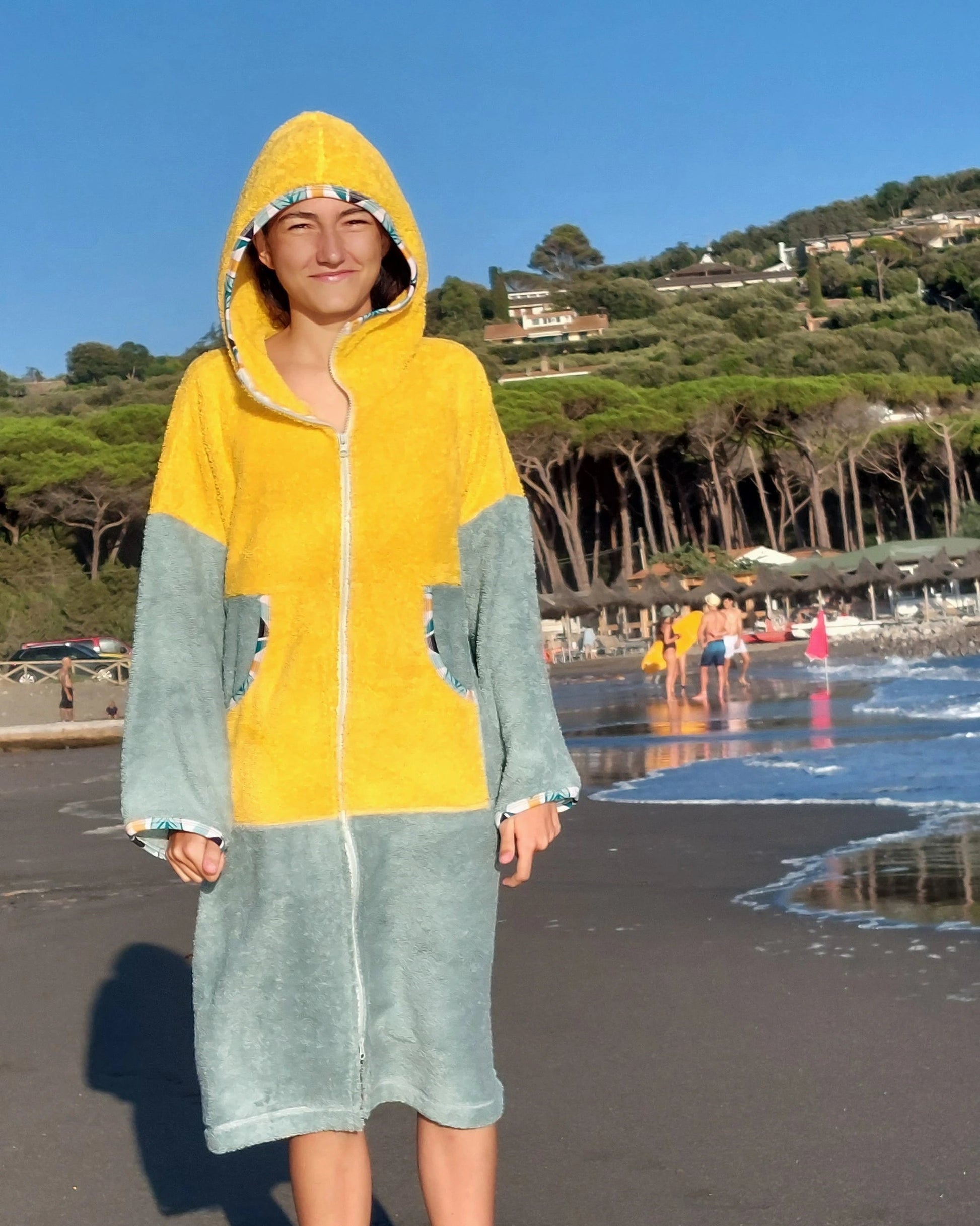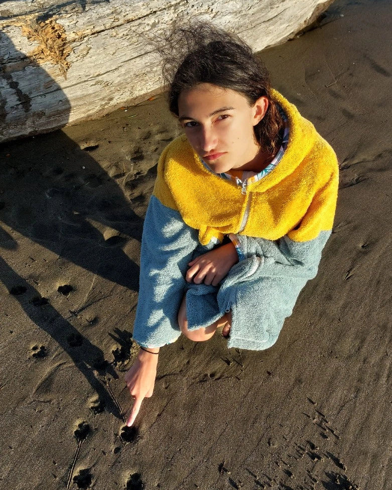 Ponczo kąpielowe YELLOW, to idealne rozwiązanie dla miłośników plaży i surfingu! To kolorowe, wielofunkcyjne ponczo z miękkiej 100% bawełnianej frotte (400 g/m²). Świetnie wchłania wodę, szybko ogrzewa i zapewnia wygodne przebranie się w każdym miejscu. Sprawdzi się jako ponczo plażowe, praktyczny szlafrok plażowy po kąpieli lub idealne okrycie po morsowaniu.