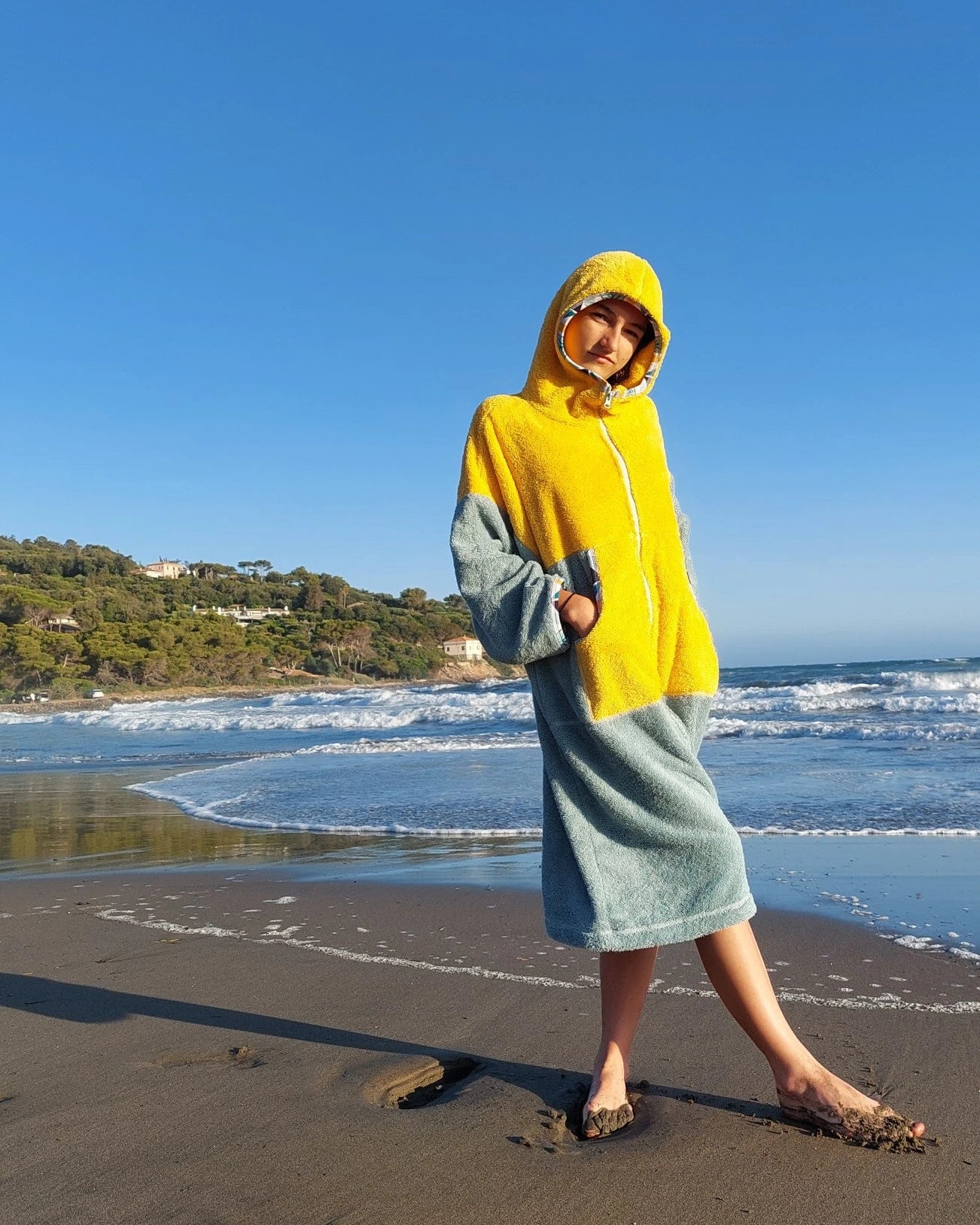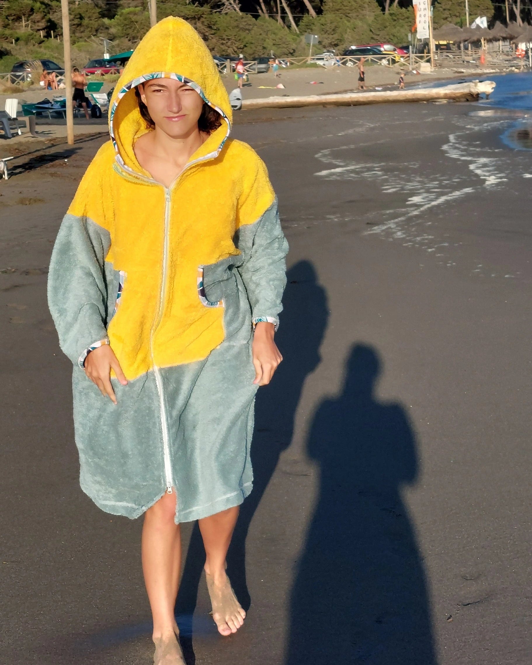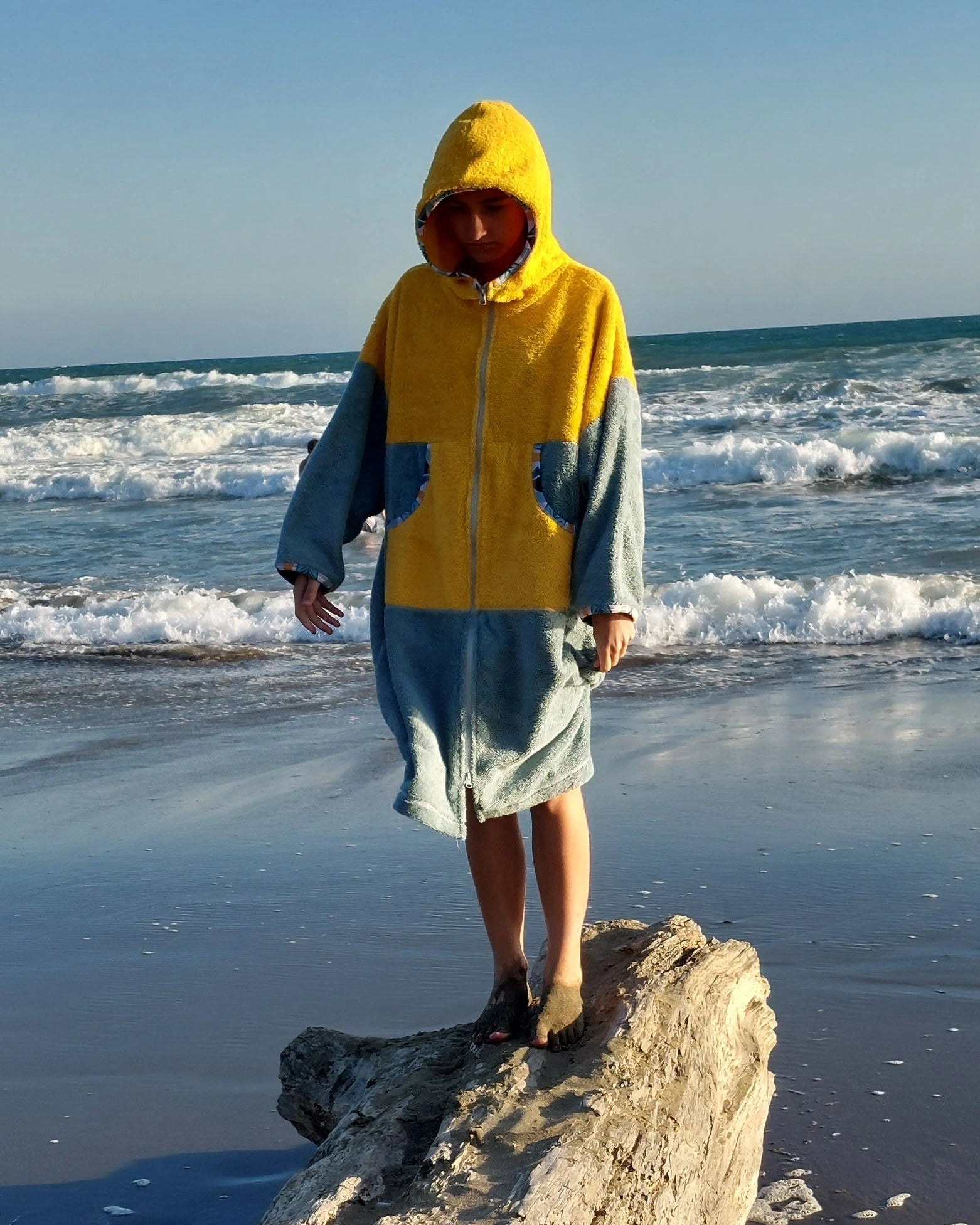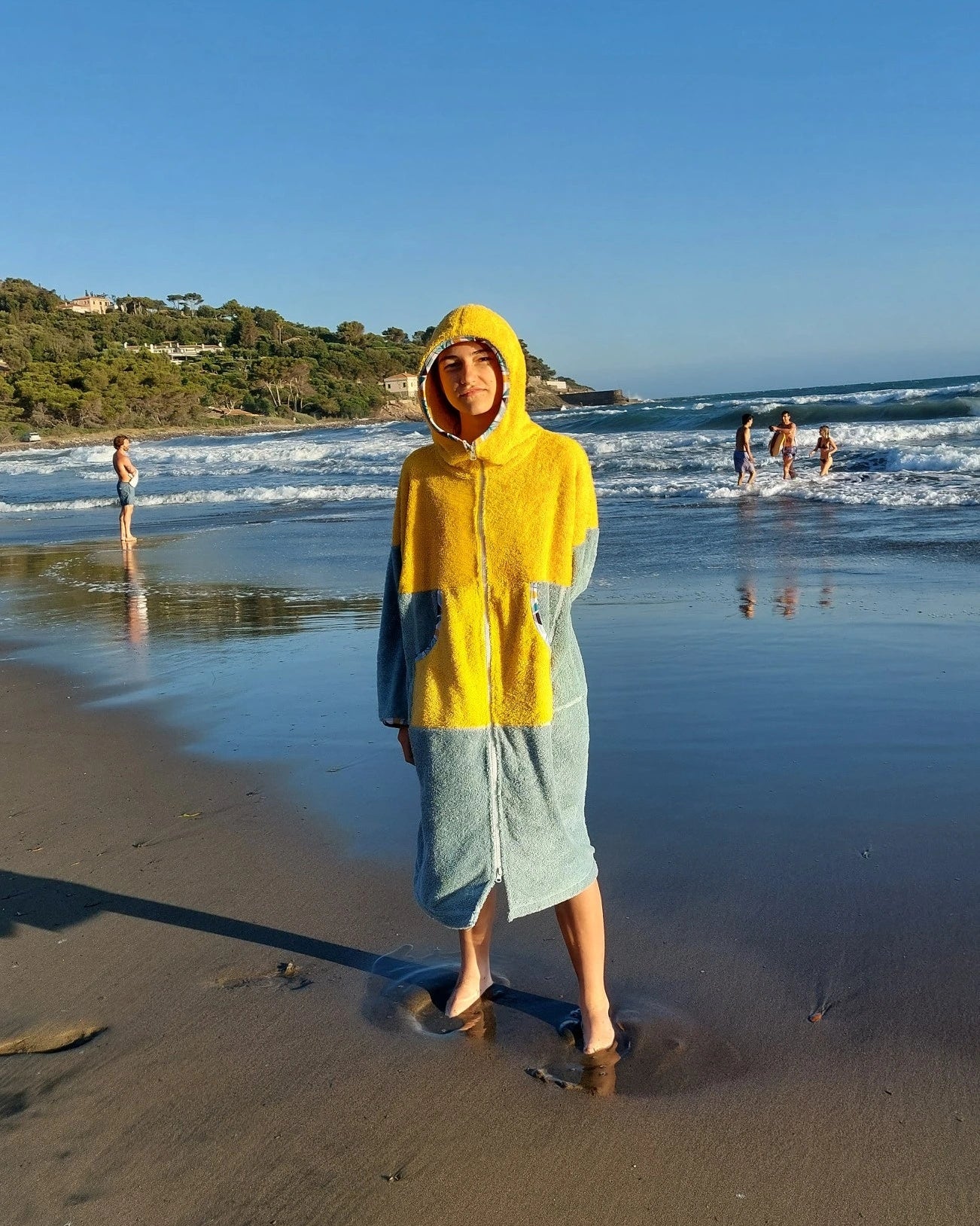Ponczo kąpielowe YELLOW, to idealne rozwiązanie dla miłośników plaży i surfingu! To kolorowe, wielofunkcyjne ponczo z miękkiej 100% bawełnianej frotte (400 g/m²). Świetnie wchłania wodę, szybko ogrzewa i zapewnia wygodne przebranie się w każdym miejscu. Sprawdzi się jako ponczo plażowe, praktyczny szlafrok plażowy po kąpieli lub idealne okrycie po morsowaniu.