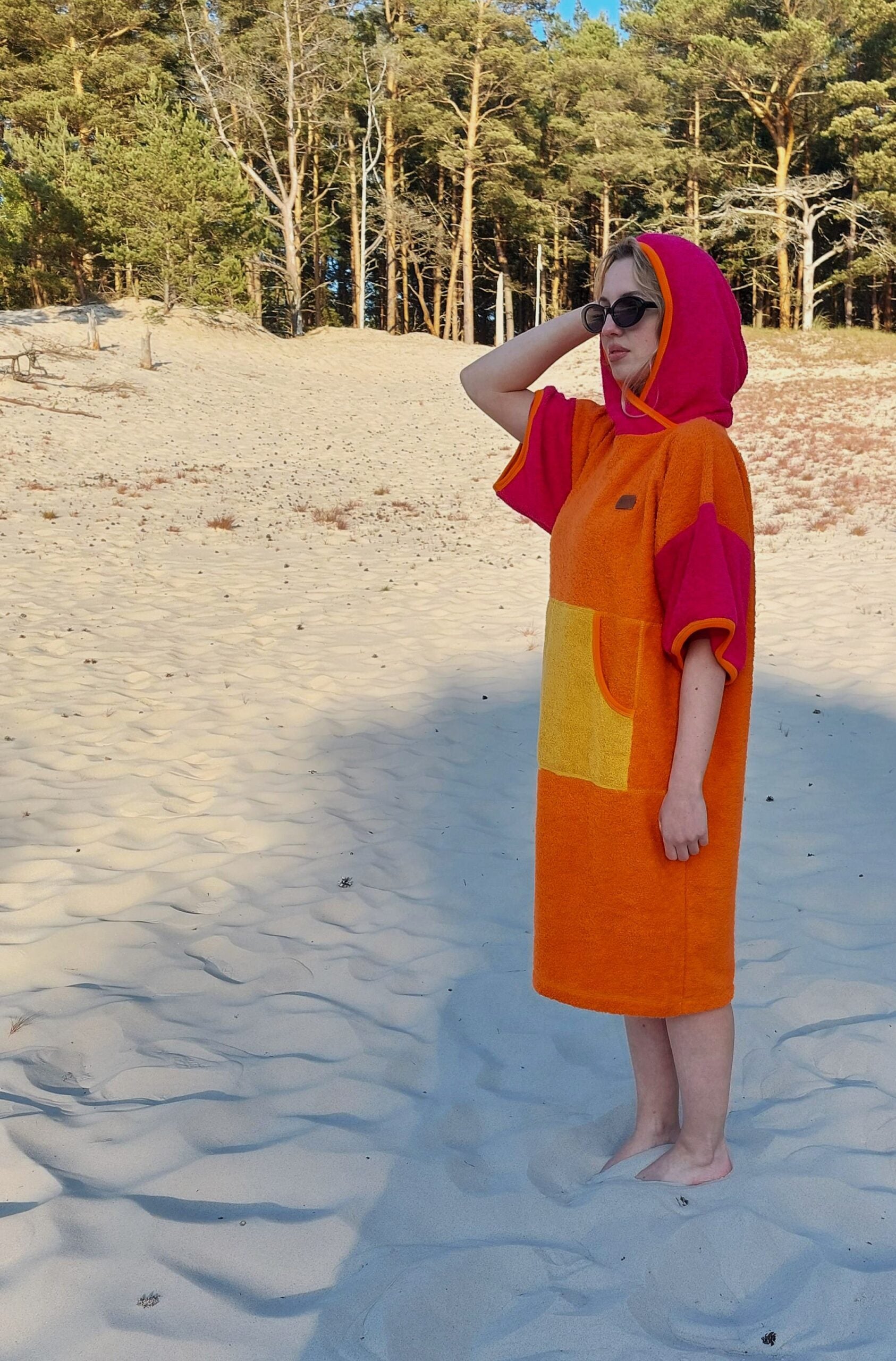 Trzykolorowe Surf Ponczo Candy Girl, wykonane jest z miękkiej i ciepłej bawełnianej frotte. Choć zostało zaprojektowane z myślą o surferach, morsach, to wszystkie aktywne osoby lubiące wygodę oraz oryginalny styl, docenią jego zalety :-). Ponczo przede wszystkim, świetnie sprawdzi się jako prywatna przebieralnia na plaży, dla surferów i morsów, zamiennik ręcznika na basenie, niekrępujące okrycie na campingu czy w kamperze. A także jako domowy szlafrok. Ponieważ, nasze poncha dostępne są w trzech rozmiarach dziecięcych: baby, kids, junior oraz damskim i męskim. Dlatego też, każdy znajdzie coś dla siebie. W odróżnieniu od większości ponch dostępnych na rynku, nasze poncha wykonane są z 100 % bawełnianej frotte. Każde ponczo wykonane jest ręcznie ze starannie dobranej, kolorowej bawełny. Krótko mówiąc, ponczo może być oryginalnym i praktycznym pomysłem na prezent zarówno dla dzieci jak i osób aktywnych, lubiących wygodę, ale i oryginalny wygląd.