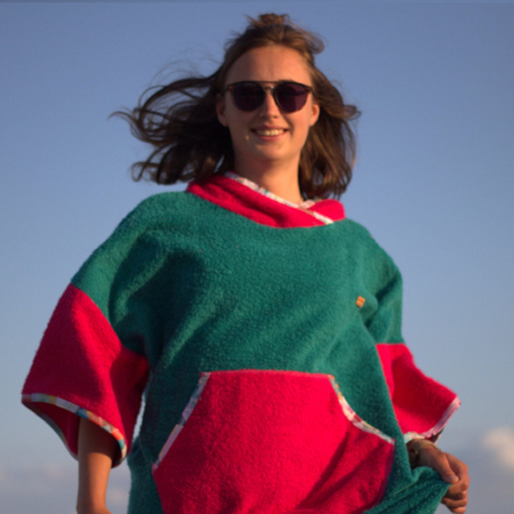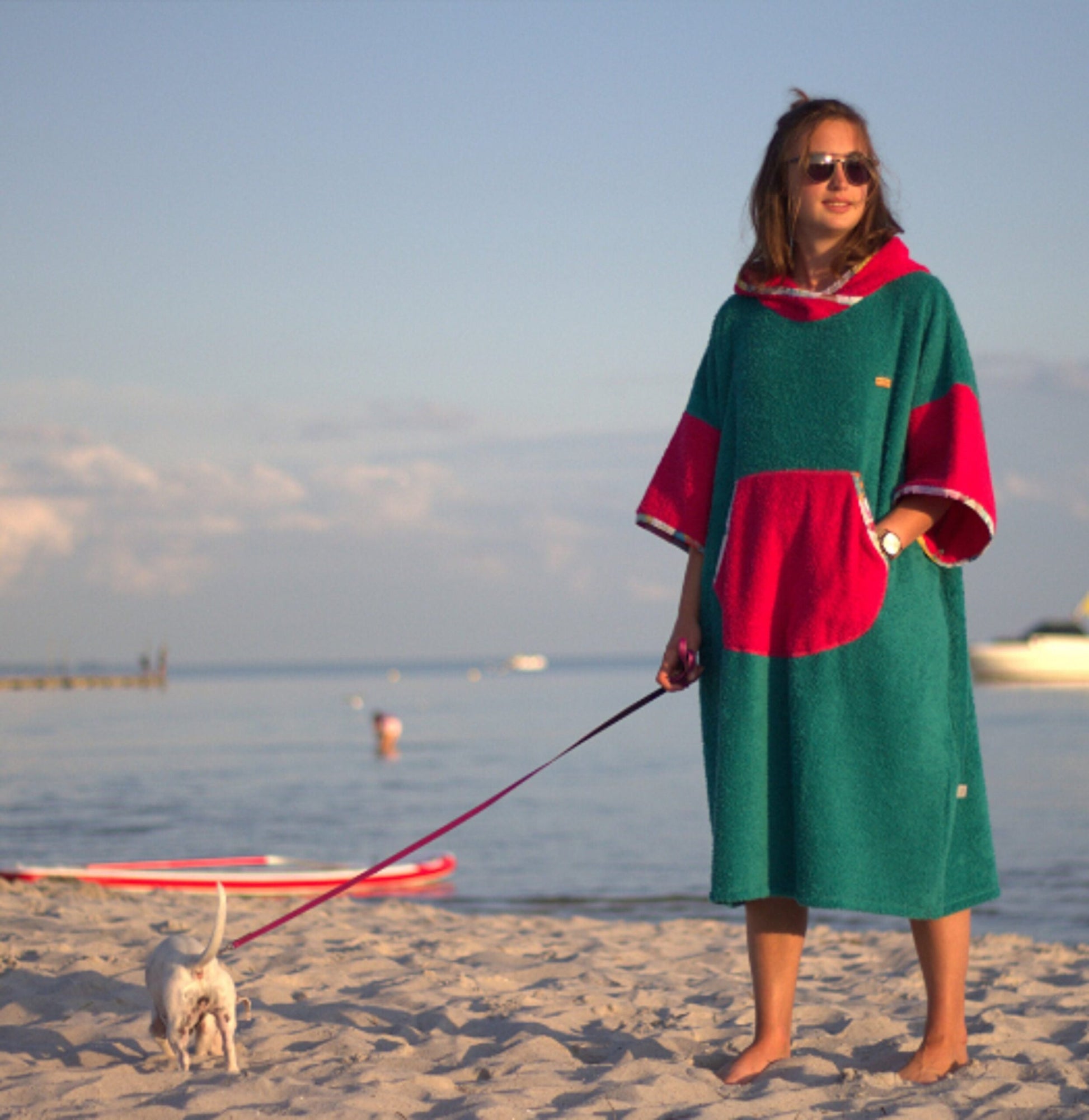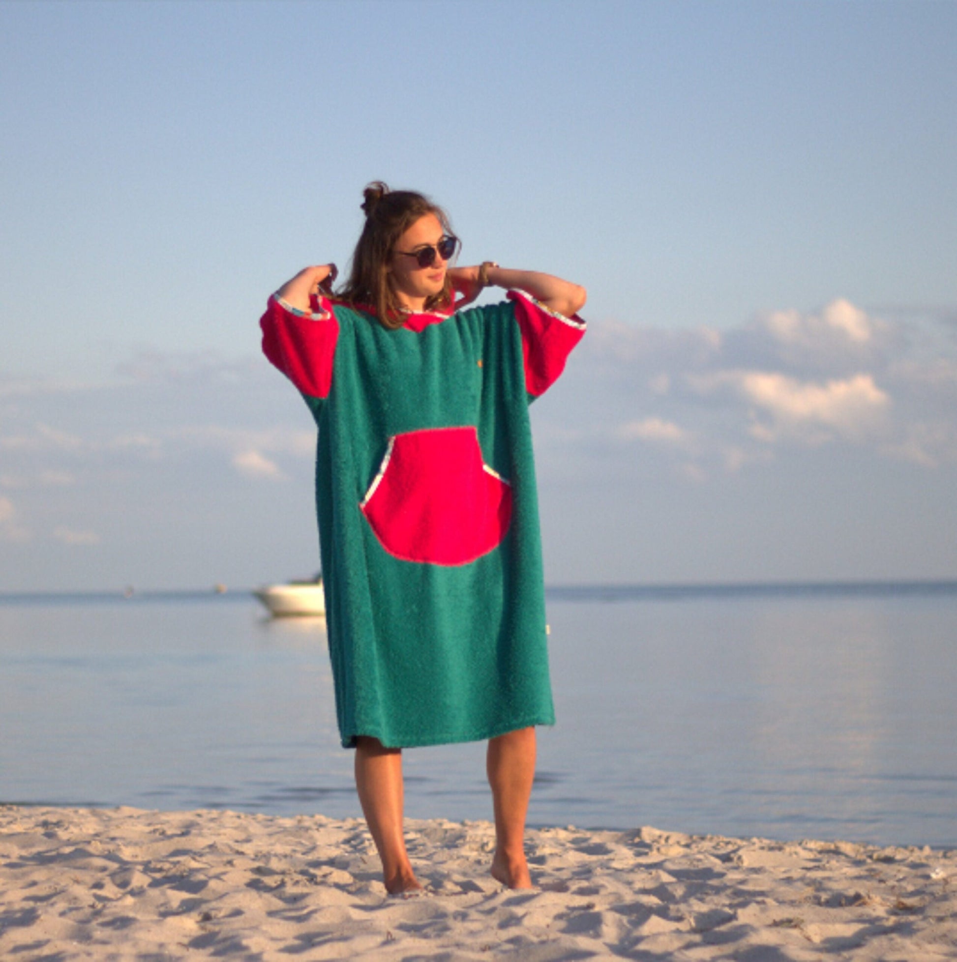 Green Energy to wyraziste połączenie zieleni i fuksji – stworzone z myślą o osobach, które cenią naturę, energię i komfort. Wykonane z miękkiej bawełnianej frotte (100%, 400 g/m²), doskonale chłonie wodę i przyjemnie ogrzewa po kąpieli w morzu, jeziorze czy basenie. Luźny krój, duży kaptur i praktyczna forma sprawiają, że ponczo pełni rolę mobilnej przebieralni i wygodnego okrycia w jednym.